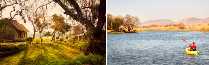 Magalies Park is a favourite spot for families, couples and friends looking to relax and unwind in a natural setting in the picturesque Magaliesberg area. The resort is set on a pristine golf course, offering a range of accommodation options from 2-sleeper ‘hotel’ rooms for a couples retreat to 3-bedroom chalets for the family safari vacation you’ve been dreaming of. From a stellar golf course with frequent onsite wildlife encounters, paintball arena, wellness spa, restaurant and Teenzone to barge cruises, Kid’s Club, playgrounds, heated pools, adventure golf and multiple sporting activity options, you and your crew will be spoilt for choice. And when it comes to nearby game drives, you will want to spend a whole week there JUST to visit them ALL!