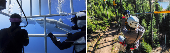 At approximately 1,100 metres in length, the Mossel Bay Zipline is the place to spread your wings and soar over the ocean at speeds of up to 80 km/h. The unforgettable views of the rocky cliffs and turquoise ocean, not to mention the adrenaline rush, are sure to take your breath away. We hope you’re not afraid of heights, because this is something you definitely don’t want to miss! After flying over the salty sea, you might be tempted to jump in. We say, “GO FOR IT!”. But why not take it up a notch with the toothiest, most jaw-some experience of a lifetime? We’re talking about Shark Cage Diving where you get up close to the Great White Shark in its natural habitat. Watch these imposing creatures gracefully glide through the water right before your very own eyes.