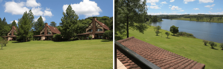 6. Pine Lake Resort: Immerse yourself in the tranquil beauty of White River, Mpumalanga, at Pine Lake Resort, nestled on the serene banks of Lake Longmere amidst the lush forests and breathtaking mountains of the region. This idyllic retreat boasts 34 split-level self-catering chalets, each equipped to accommodate up to six guests with three bedrooms, two bathrooms, a living area, dining room, kitchen, and a patio with a braai, complemented by a cosy indoor fireplace for the cooler evenings. There are also a variety of onsite activities including tennis and volleyball courts, a games room, and outdoor adventures such as swimming, hiking, and canoeing. For those seeking relaxation, Dee’s African Spa provides the perfect oasis of calm. With its stunning surroundings, comprehensive facilities and a laid-back holiday atmosphere, Pine Lake Resort is the ultimate escape for those looking to unwind and explore the majestic Mpumalanga province.
