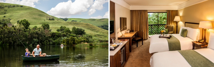 Nestled in the stunning Cathkin Park range, Drakensberg Sun Resort is a favourite for those seeking a peaceful escape in the heart of the Drakensberg. Offering a range of beautifully furnished rooms and activities like hiking, horse riding, and canoeing on the private lake, it’s perfect for families. With an eco-friendly spa, tennis courts, and a kids play area, there’s something for everyone to enjoy in this breathtaking mountain retreat.