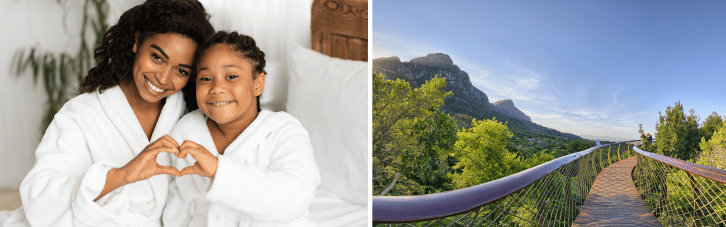 Mount Sierraticks all these Cape hiking holiday boxes and more. It’s got Table Mountain right in its backyard as it’s located in the heart of Cape Town. It’s perfect for solo, couples or group hiking holidays with one- and two-bedroom offerings which provide cosy rooms with all the home comforts, plus a heated indoor pool and wellness centre onsite. The added benefit of staying here is that there are multiple hiking/walking trails under 15 min away: The Pipe Track trail is 6 min away |TheKasteelspoort trail is 10 min away |TheTranquility Cracks trail is 10 min away |ThePlatteklip Gorge trail is 12 min away | The Maclear’s Beacon trail is 14 min away!